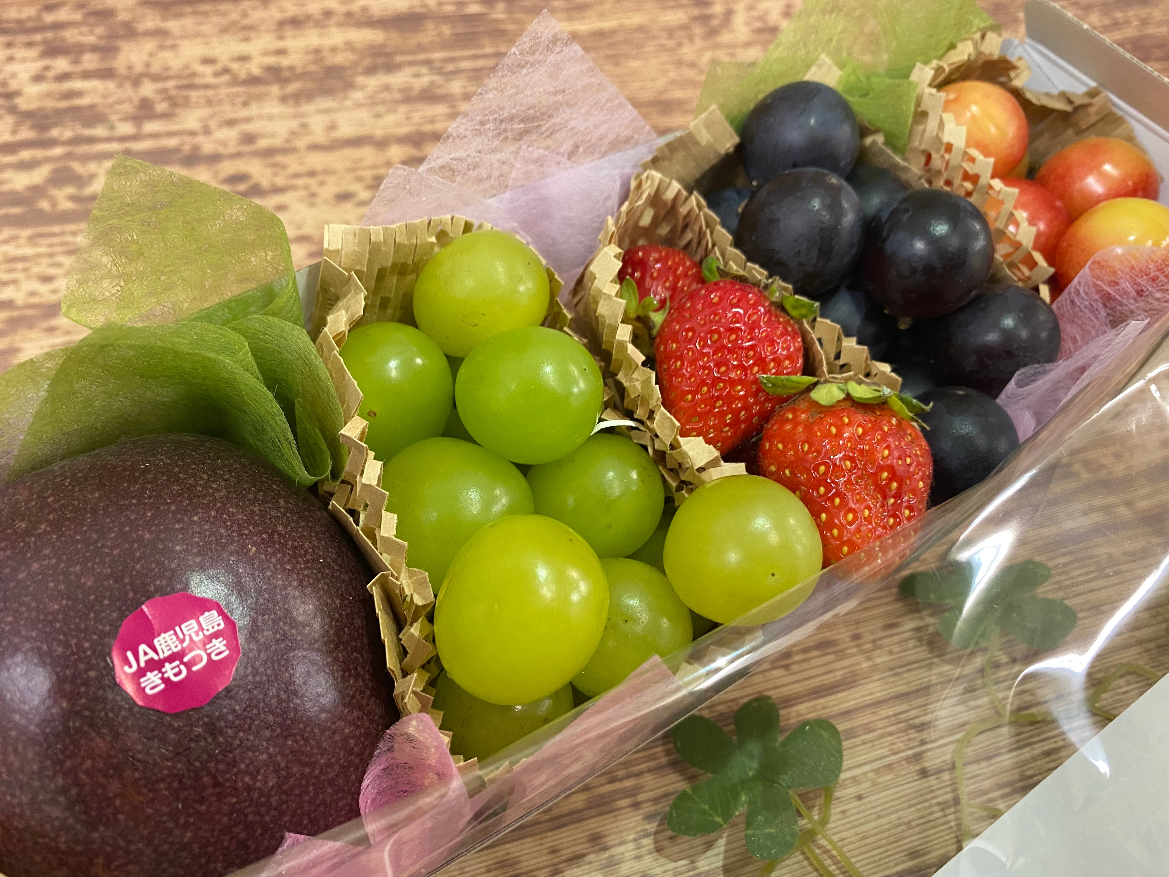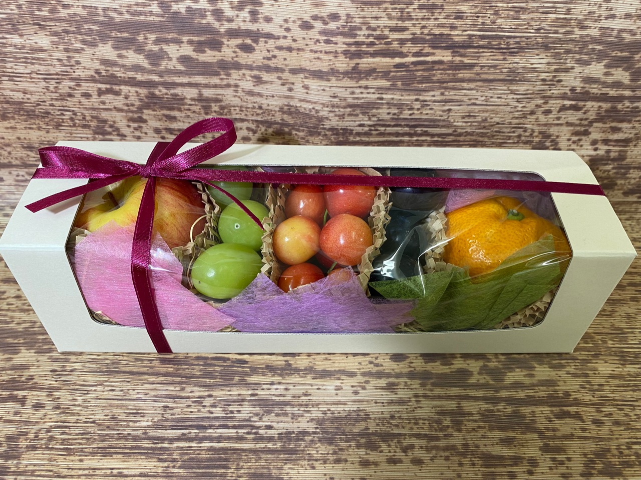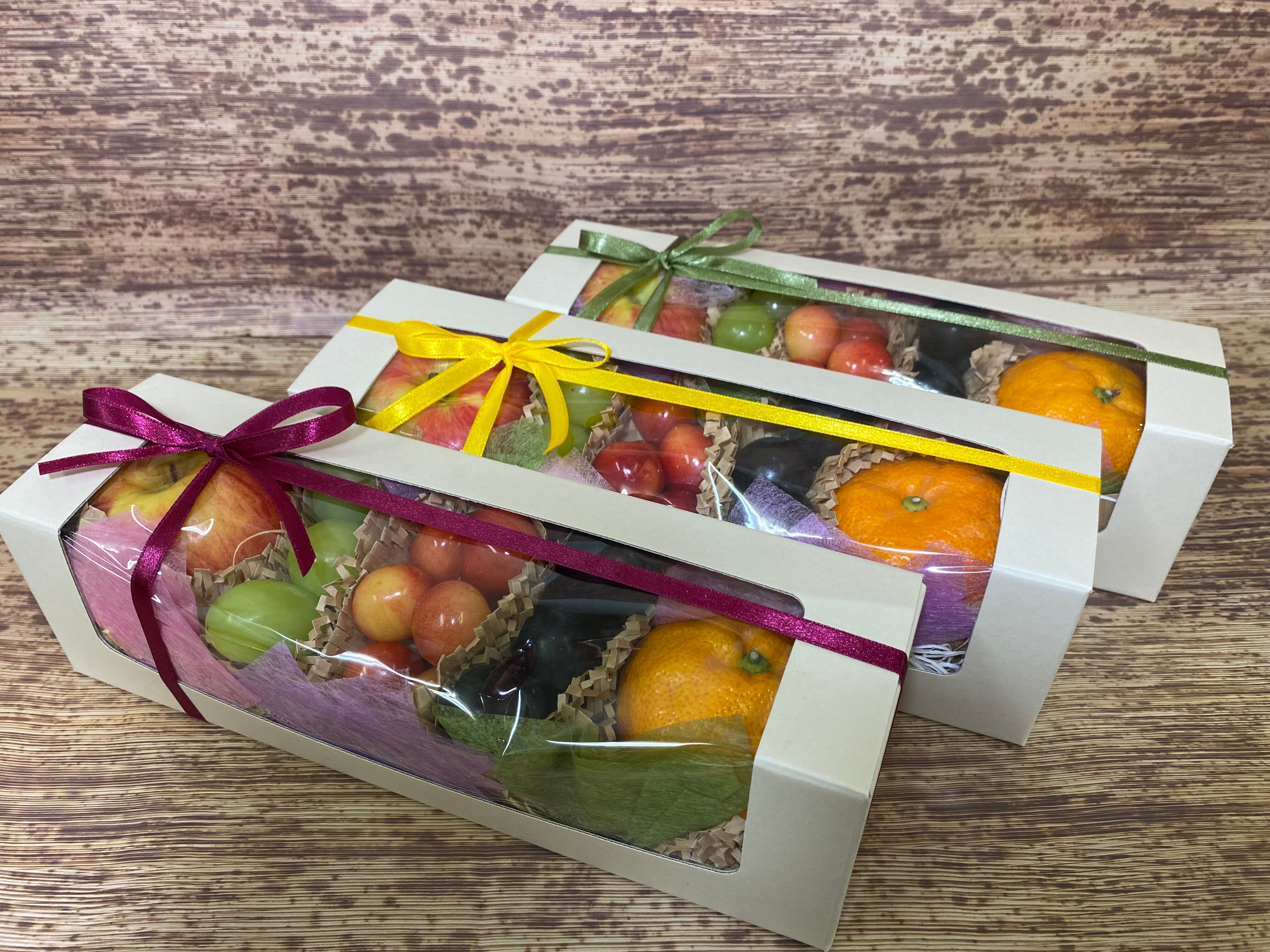 季節感満載の果物をちょっとずつ箱に盛り込んだプチギフトです。